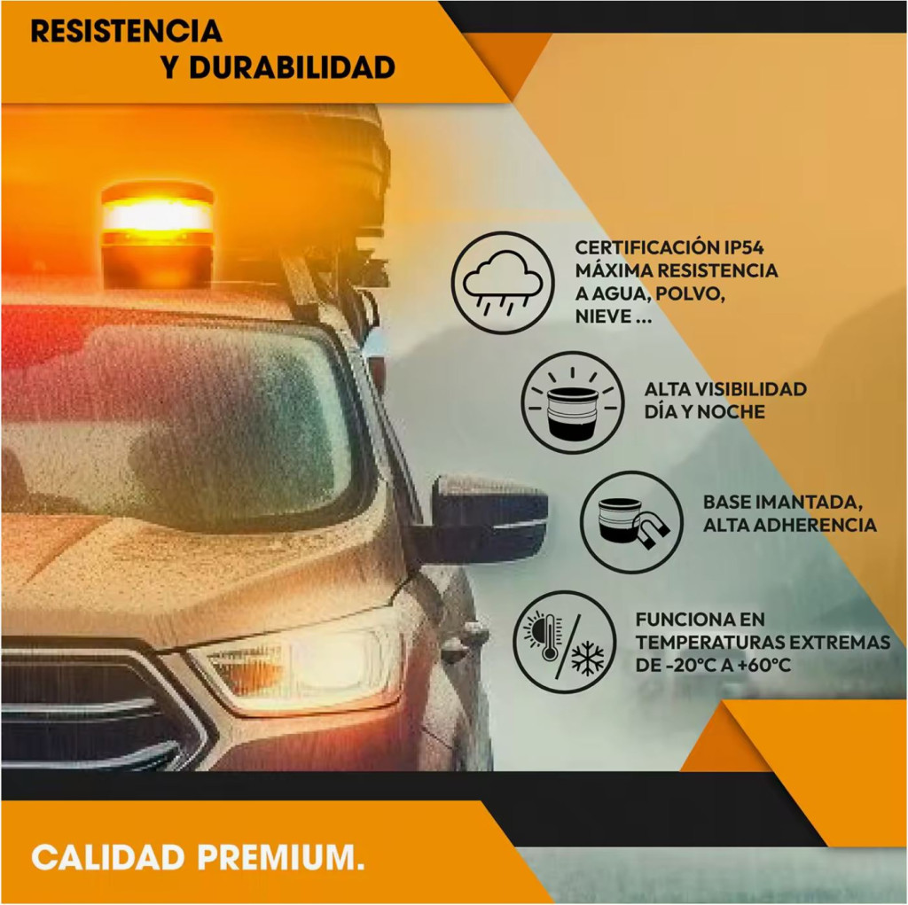 Este dispositivo V16 es una baliza geolocalizada que emite destellos de alta intensidad a 360º en color amarillo auto. Está equipada con conectividad a la DGT3.0.
