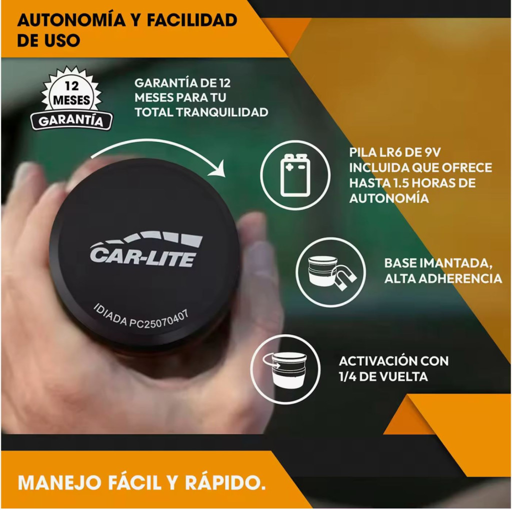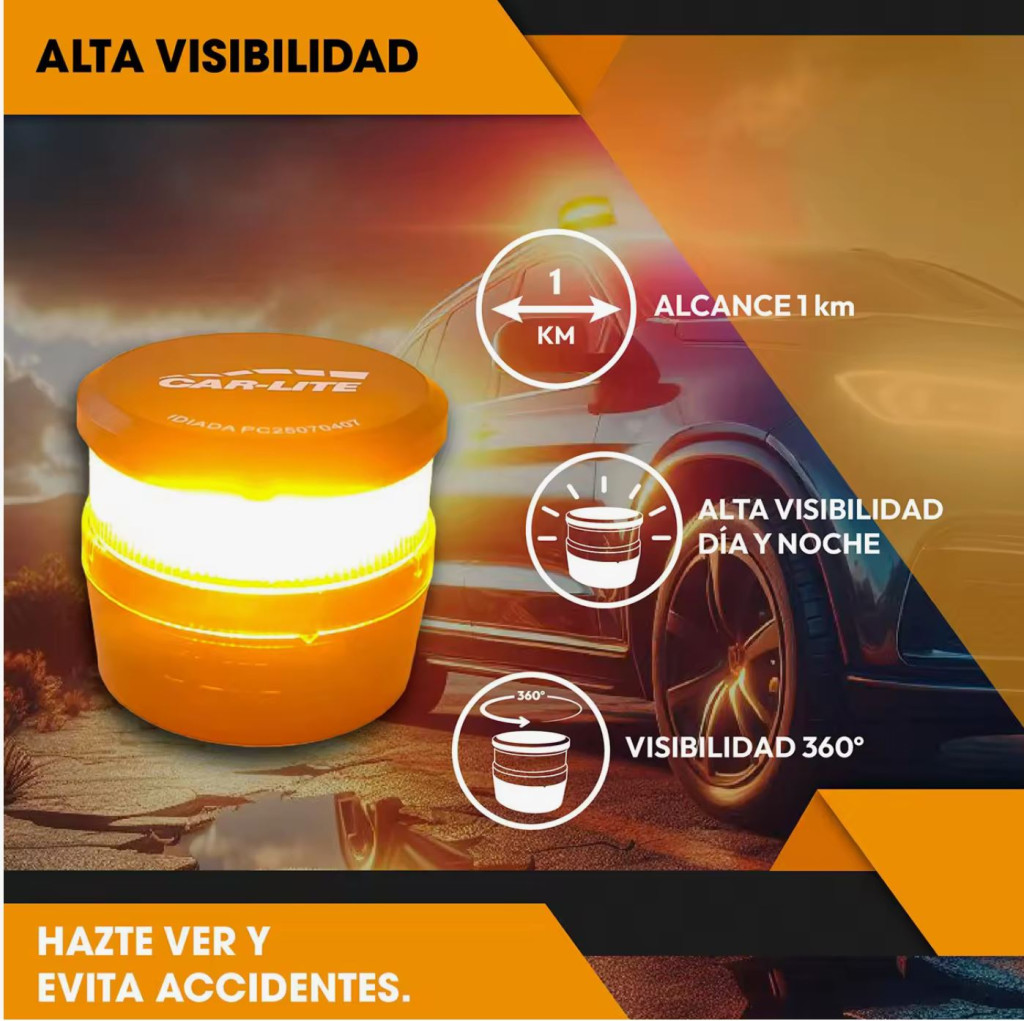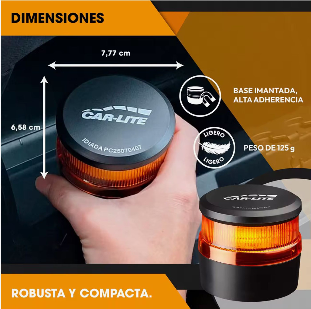 Utiliza la baliza en caso de incidencia o emergencia con tu vehículo en la carretera. Los destellos luminosos advertirán a los demás conductores de tu ubicación y, de forma anónima, se transmitirán las coordenadas geográficas a la DGT.