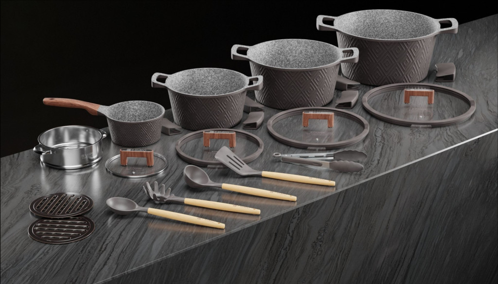 Batería de Cocina 22 Piezas Stone Titanium
