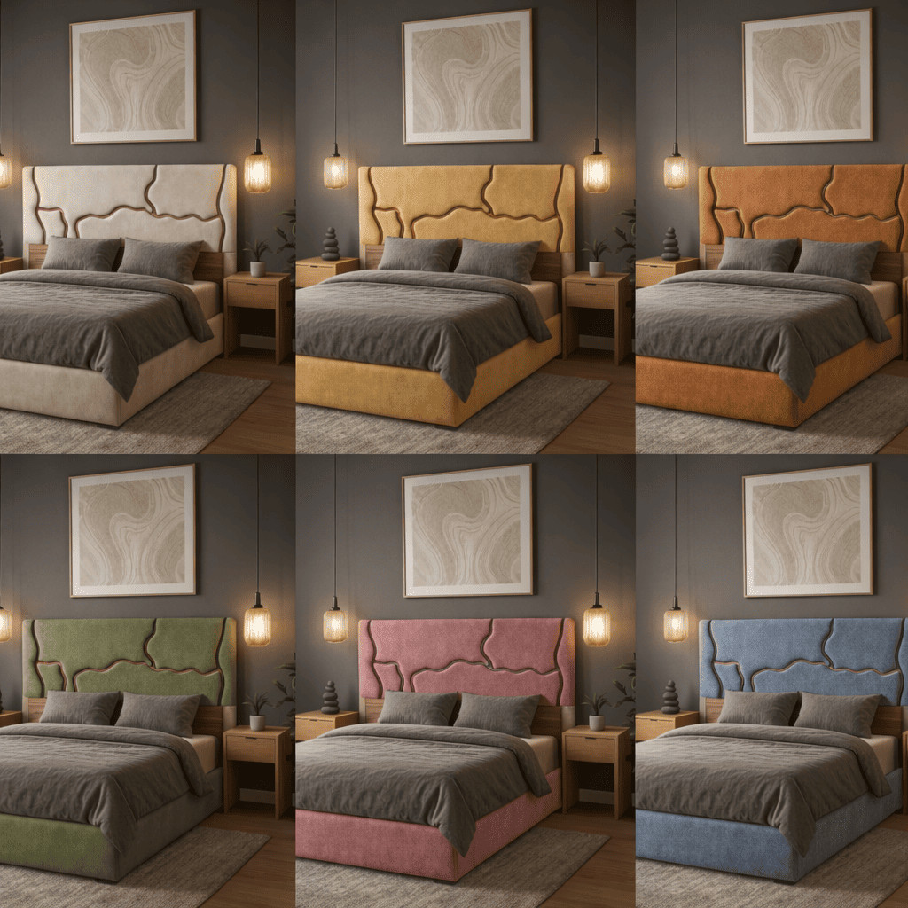 Este elegante cabecero ha sido diseñado para crear un ambiente cálido, moderno y acogedor, donde los tonos tierra y sus líneas suaves transmiten una sensación de calma, equilibrio y bienestar. Su tapizado en tono beige aporta luminosidad y serenidad al dormitorio, mientras que los detalles orgánicos en madera realzan su carácter natural y sofisticado, convirtiéndolo en una pieza protagonista.